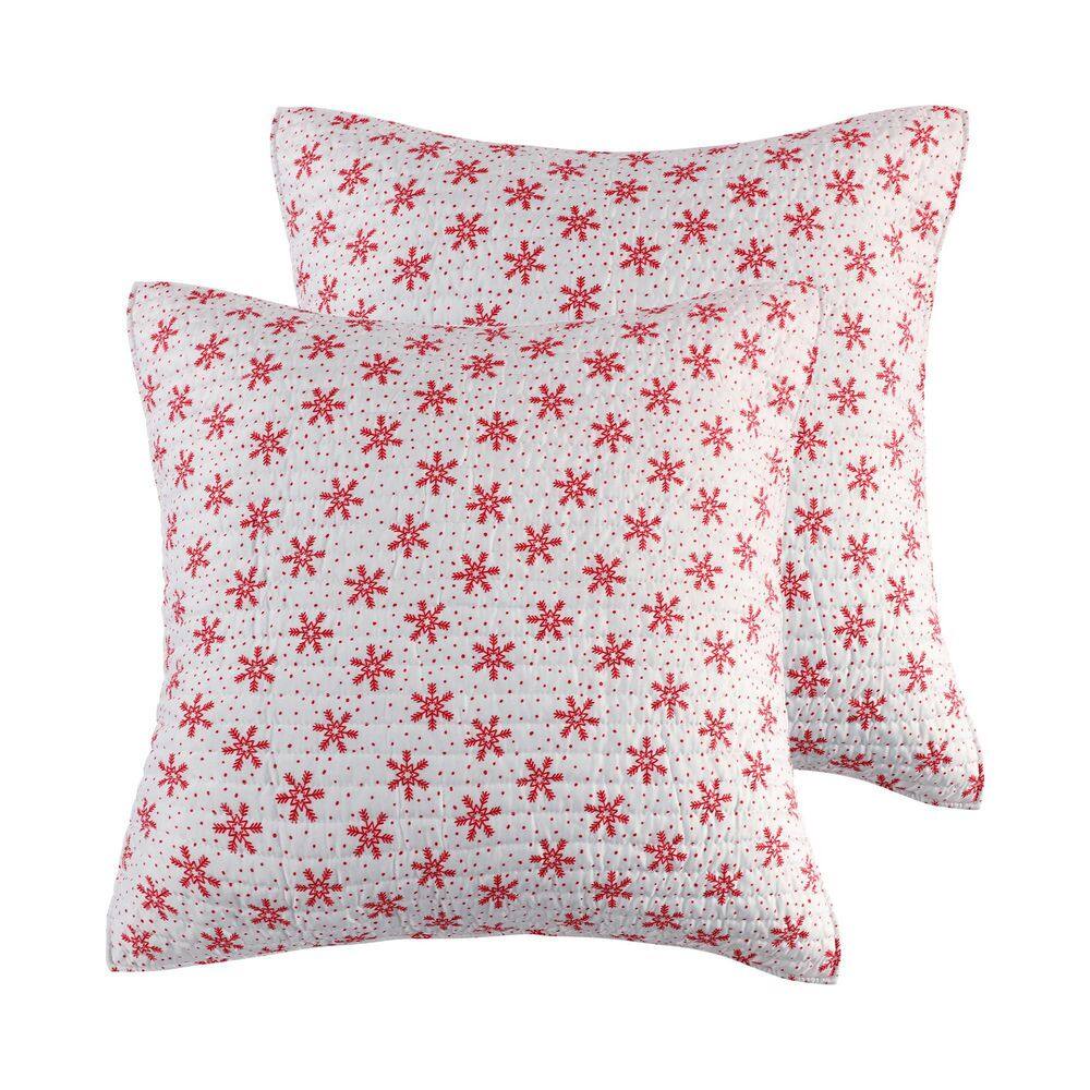 None Let It Snow Red Snowflakes Quilted Microfiber Euro Sham (Set of 2)