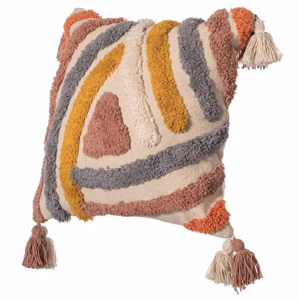 DEERLUX 16 in. x 16 in. Multicolor Handwoven Cotton Throw Pillow Cover with Tufted Line Pattern and Double Tassel Corners