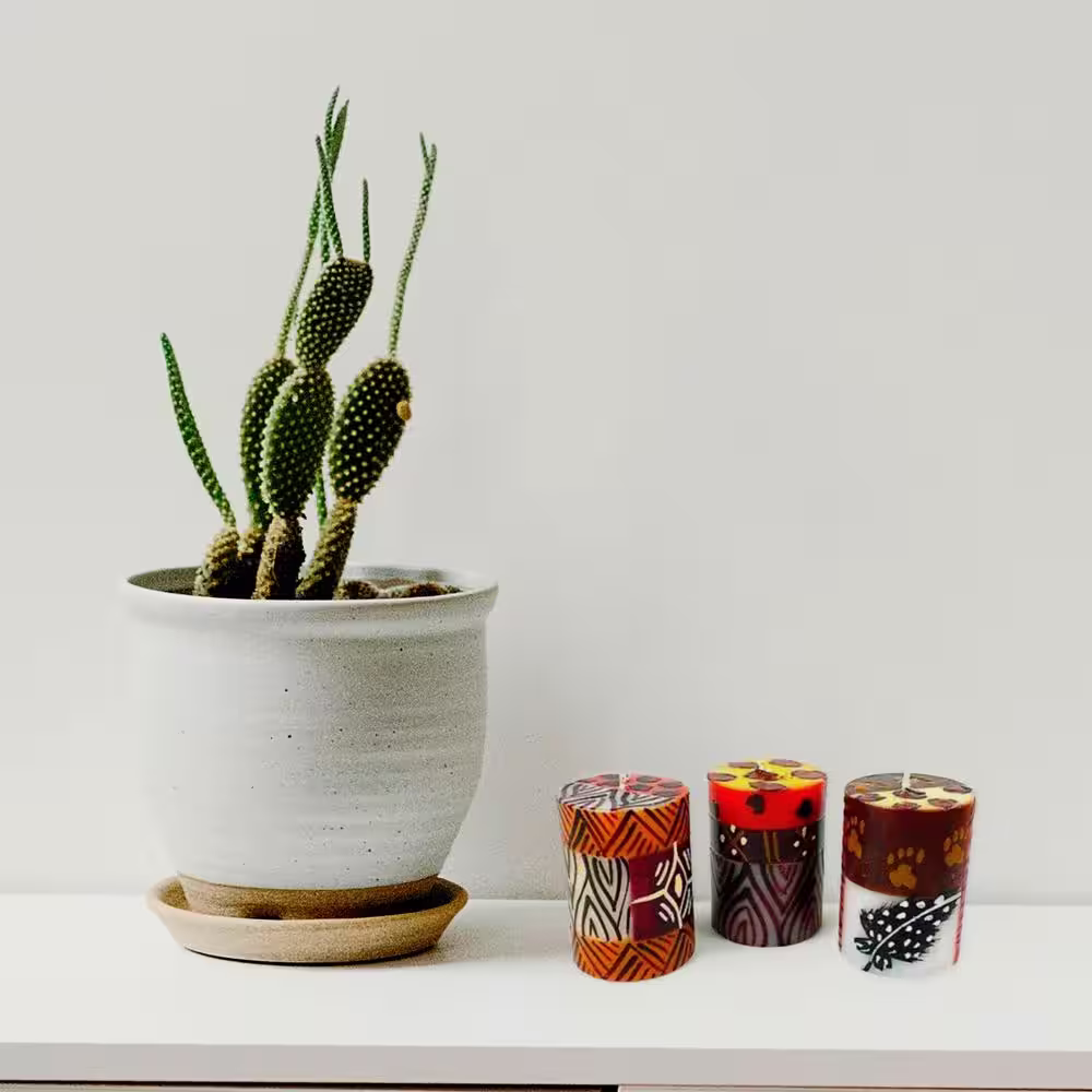 Global Crafts Uzima Design Unscented Hand-Painted White Votive Candles Boxed (Set of 3)