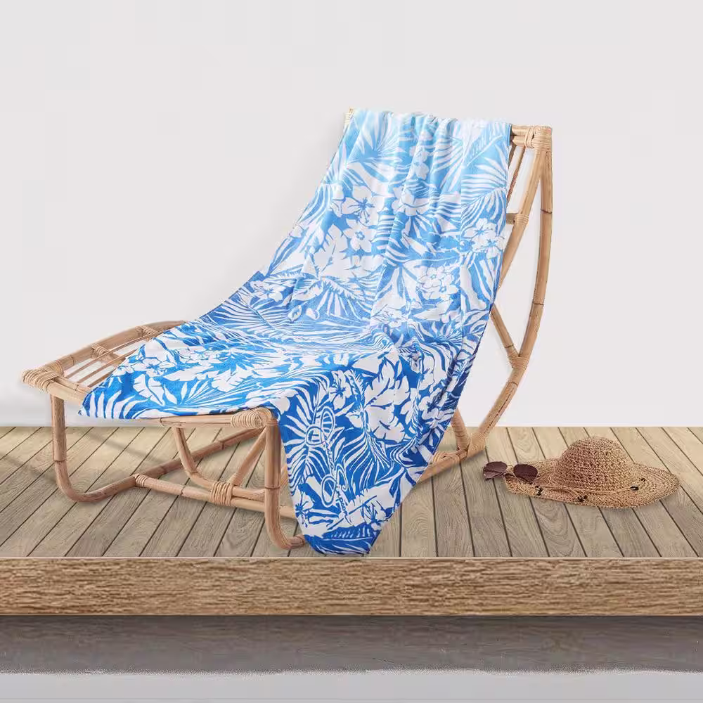 None Ocean Breeze Blue/White Printed 100% Cotton Single Beach Towel
