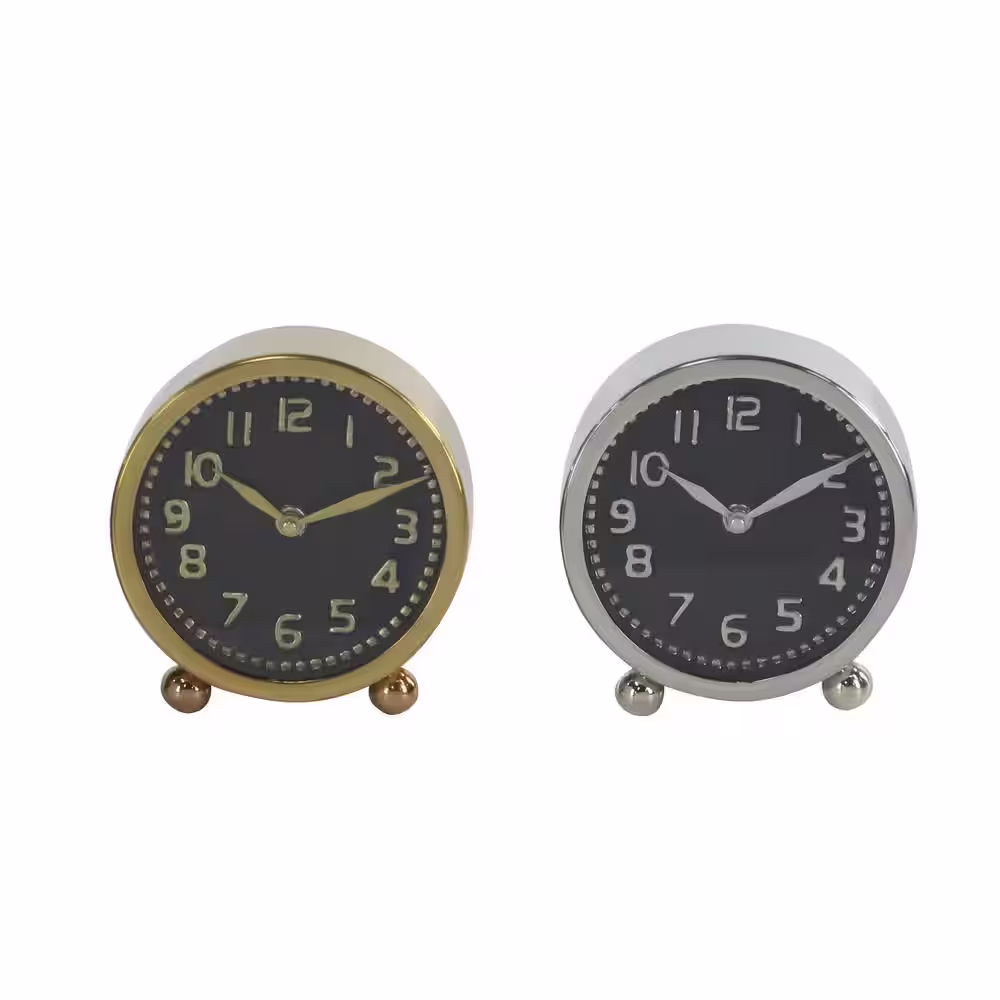 Litton Lane Multi Colored Stainless Steel Glam Analog Tabletop Clock (Set of 2)