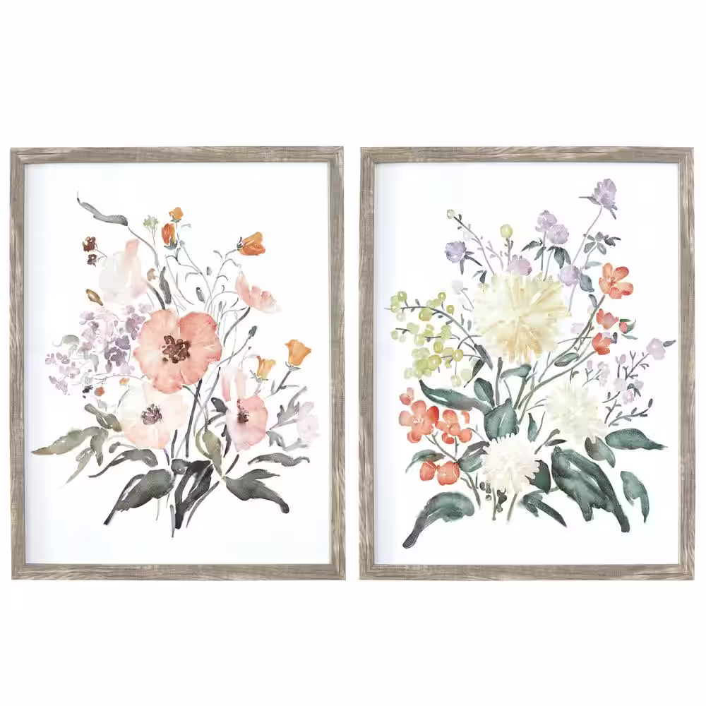 STYLEWELL KIDS Watercolor Floral Framed Wall Art (Set of 2) (17 in. W x 21 in. H)