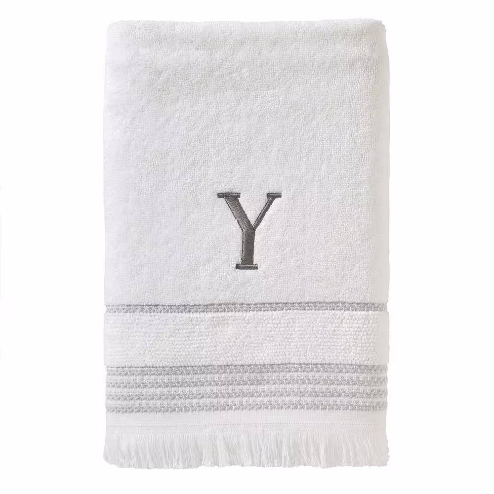 SKL Home Casual Monogram Letter Y Bath Towel, white, cotton