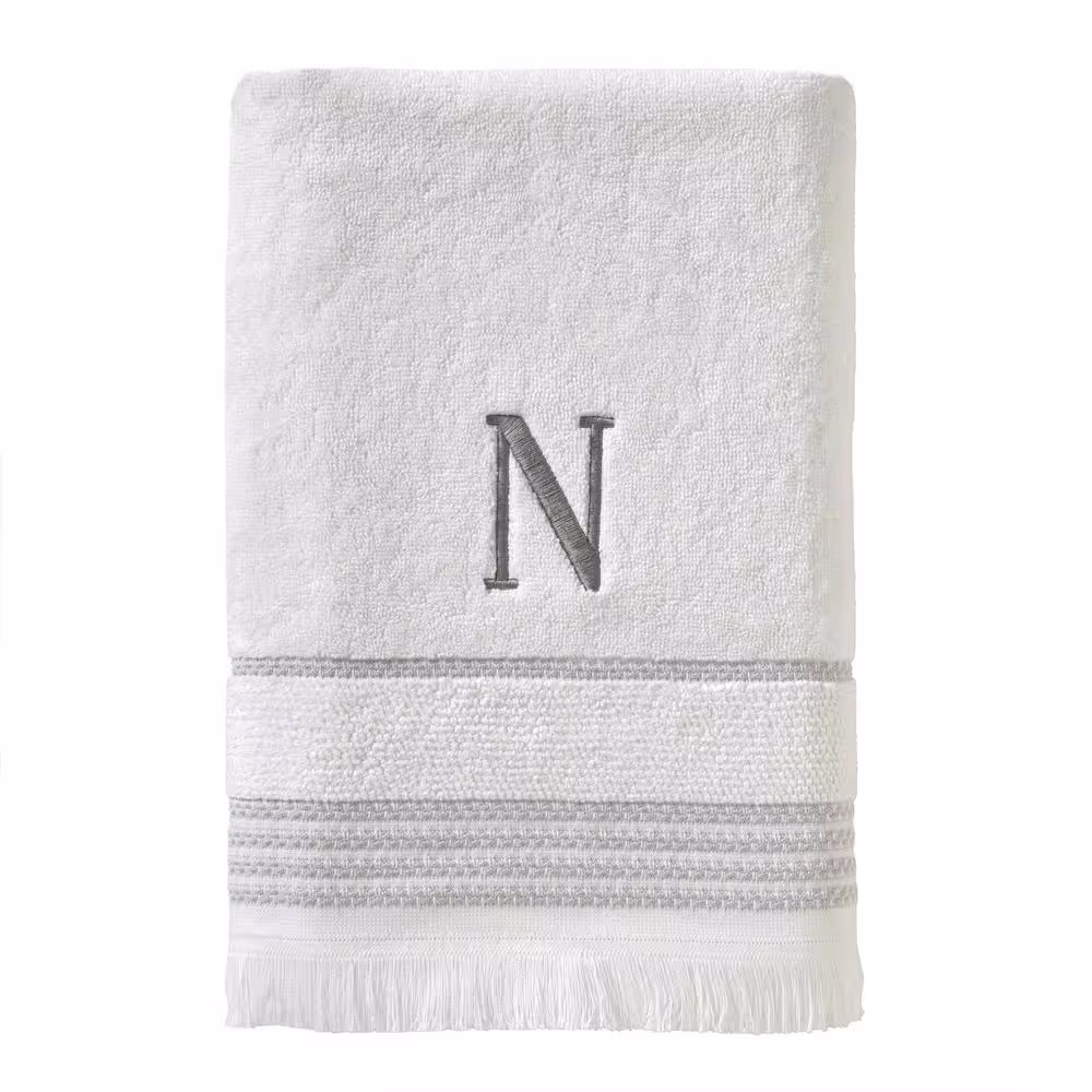 SKL Home Casual Monogram Letter N Bath Towel, white, cotton