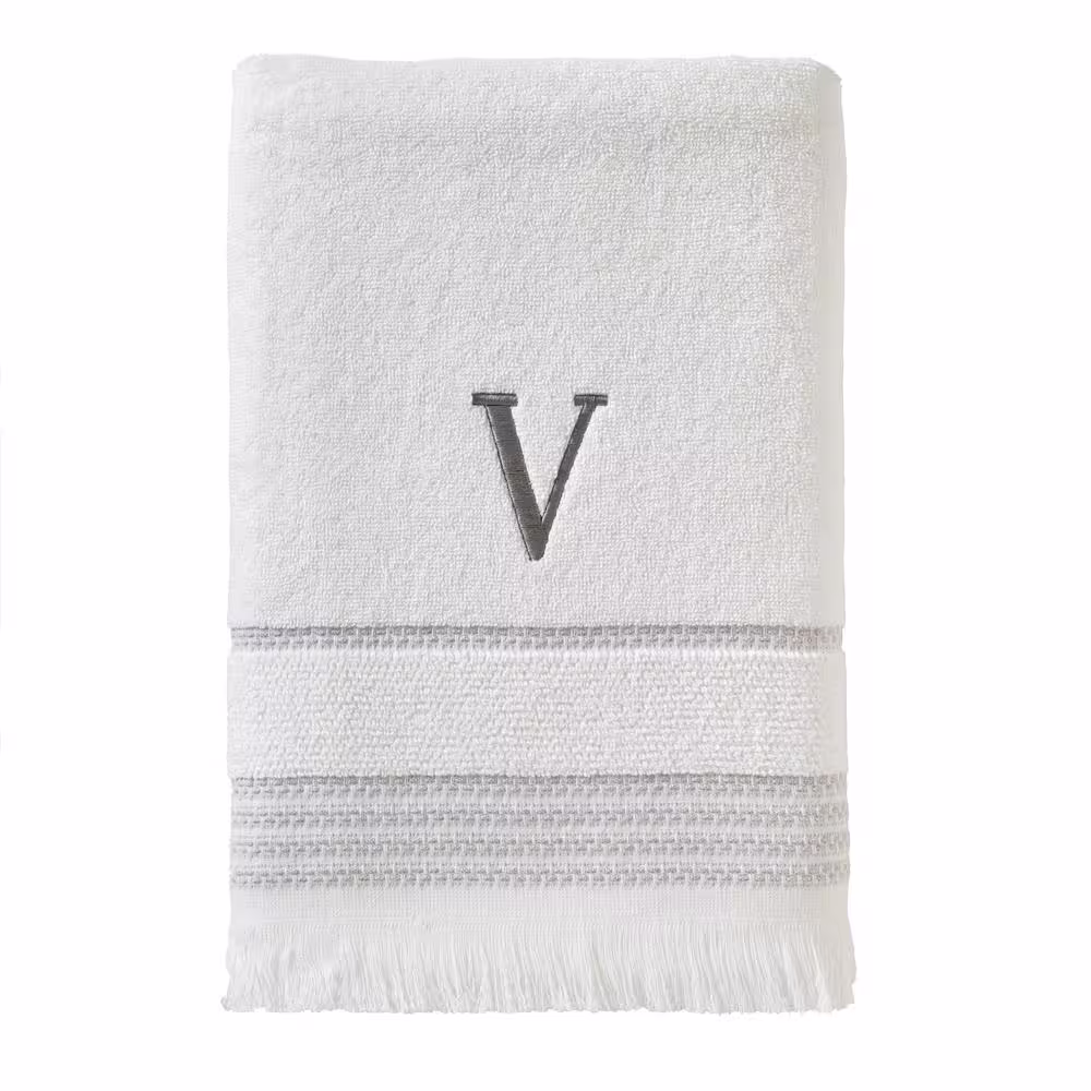 SKL Home Casual Monogram Letter V Bath Towel, white, cotton