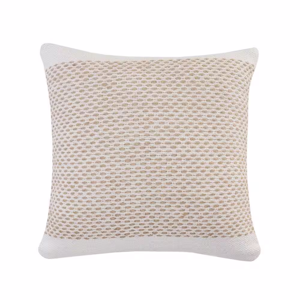LR Home Interwoven Jute Off - White / Tan Latticework Cozy Poly-Fill 20 in. x 20 in. Throw Pillow