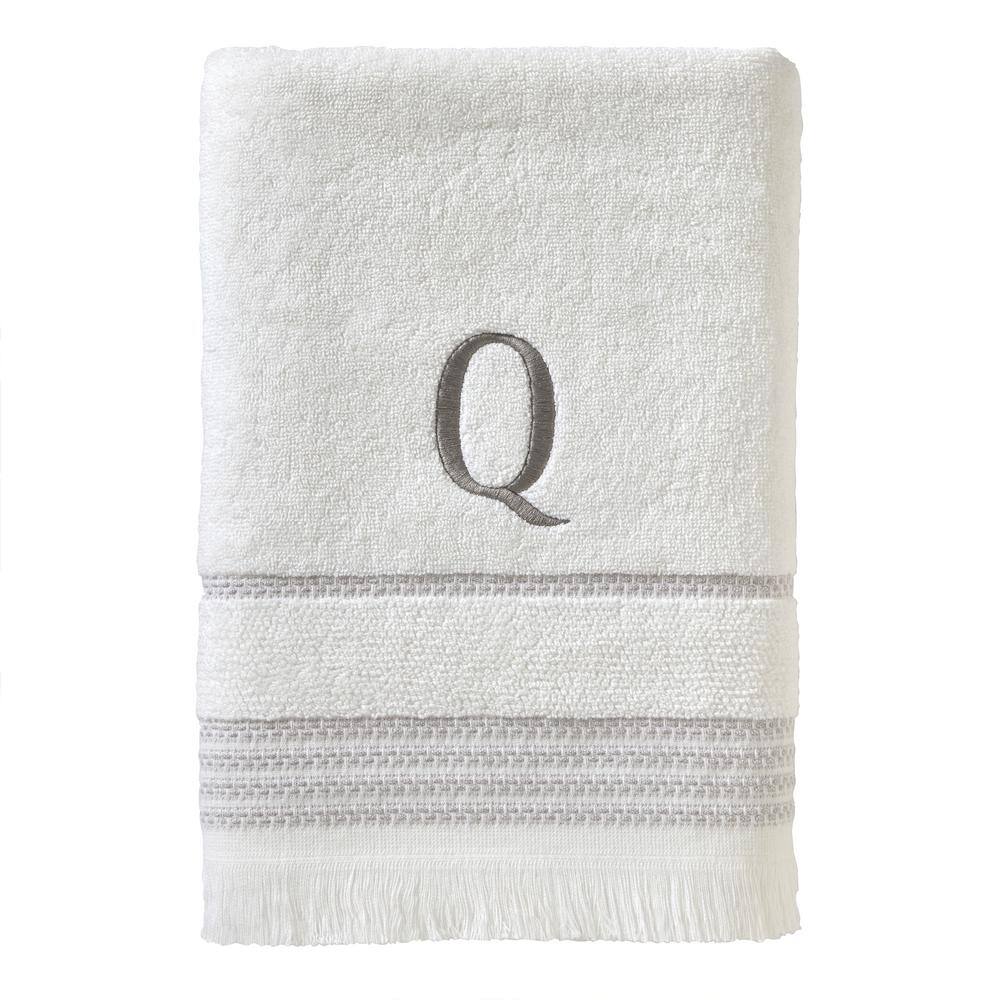 SKL Home Casual Monogram Letter Q Bath Towel, white, cotton