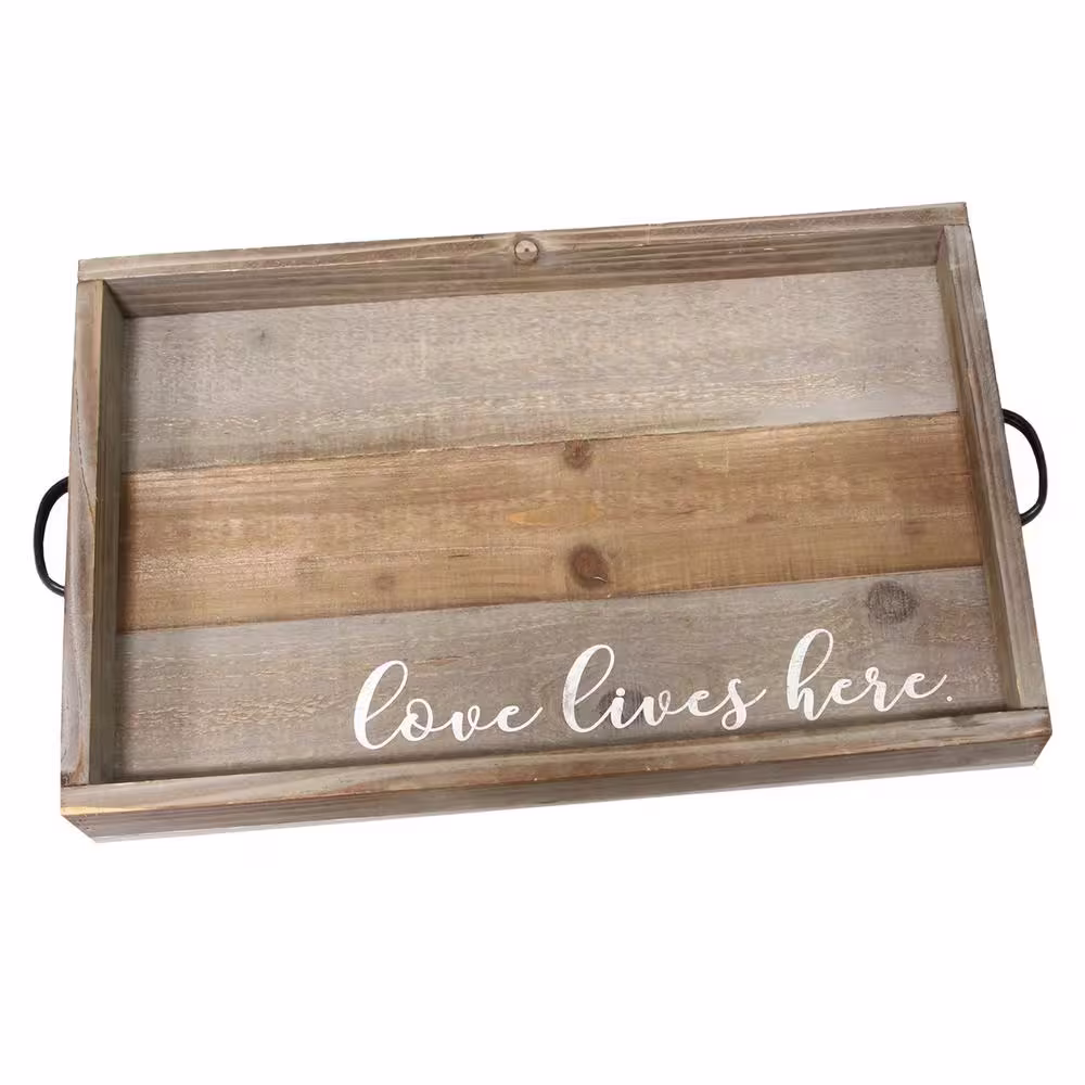 Stratton Home Decor "Love Lives Here" Wood Tray