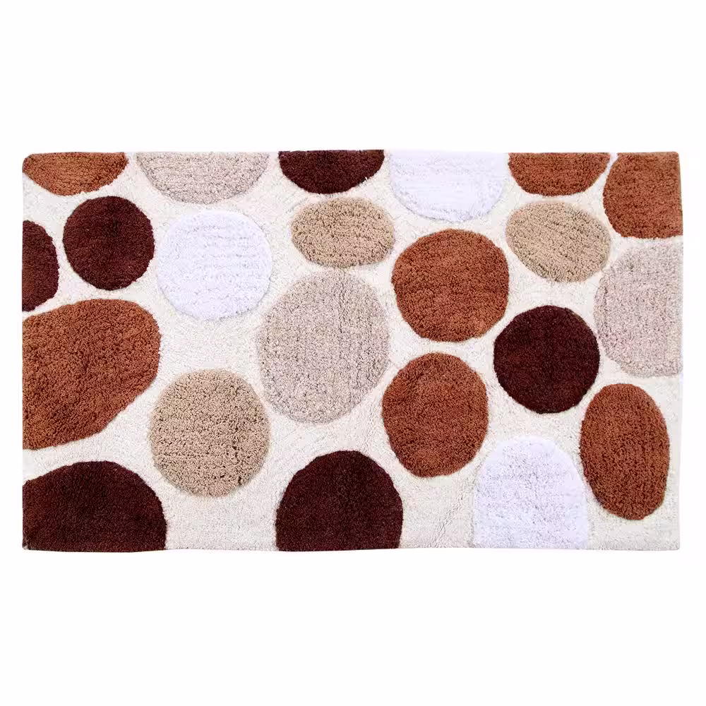 Saffron Fabs Bath Rug Cotton 34 in. x 21 in. Latex Spray Non-Skid Backing Multiple Brown Pebble Stone Pattern Machine Washable
