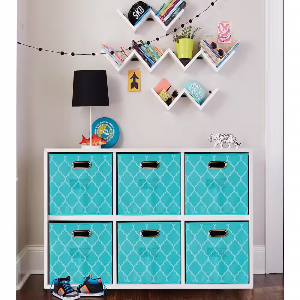 None 6-Pack Lattice Foldable Fabric Storage Cube Bins Shelf Basket Box with Handles and Window Pockets