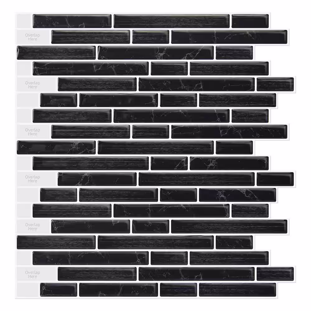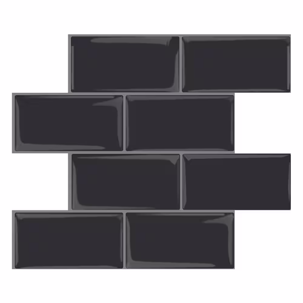 MURENO Black Subway 10.00 in. x 12.60 in. Vinyl Peel and Stick Backsplash Tile (3.5 sq. ft./pack)