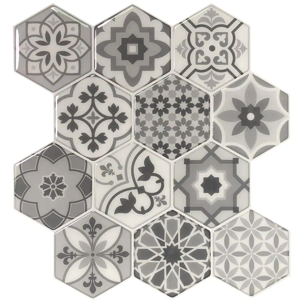 LONGKING 11.4 in. x 10.6 in. Vinyl Peel and Stick Decorative Wall Tile Backsplash Hexagonal (6.5 sq ft. /Pack)