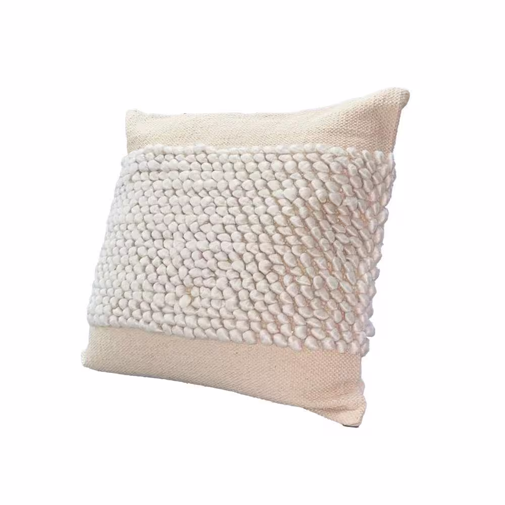 THE URBAN PORT White and Cream Square Cotton Accent Throw Pillow with Soft Banded Braided Patchwork (20 in. x 20 in.) (Set of 2)