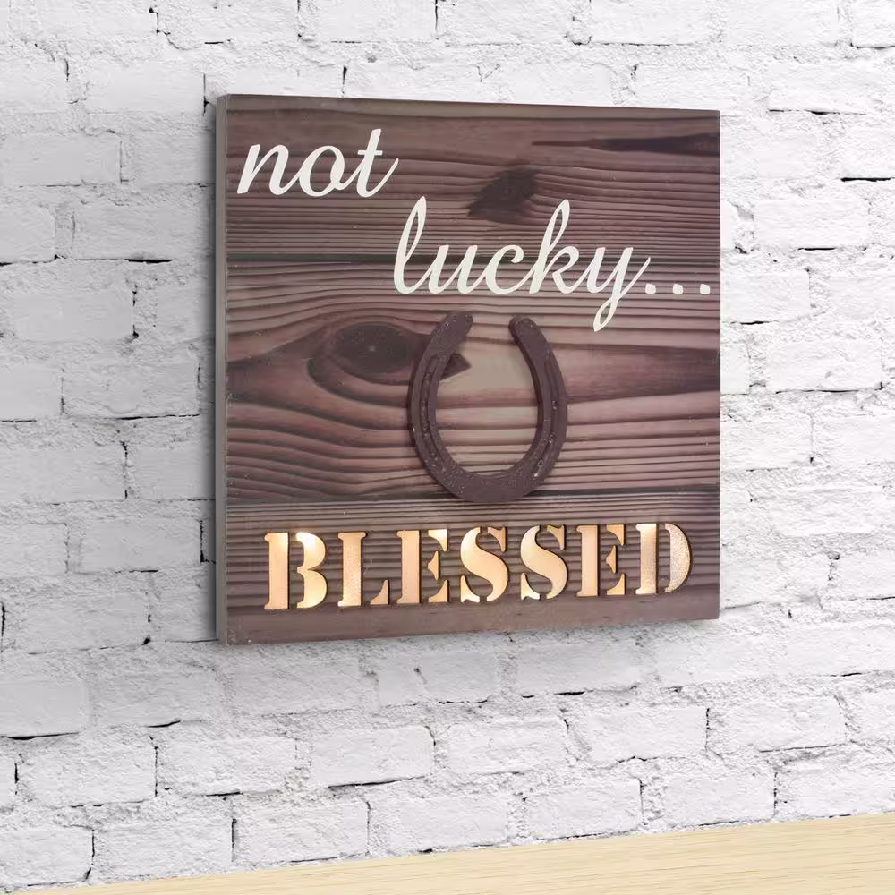 Stonebriar Collection 12 in. x 12 in. Brown Wood LED Wall Art with Horseshoe Detail