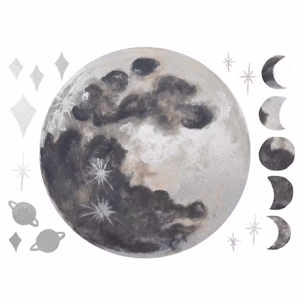Mr. Kate Mr. Kate Grey Moon Peel and Stick Vinyl Wall Decals with Metallic Silver Ink