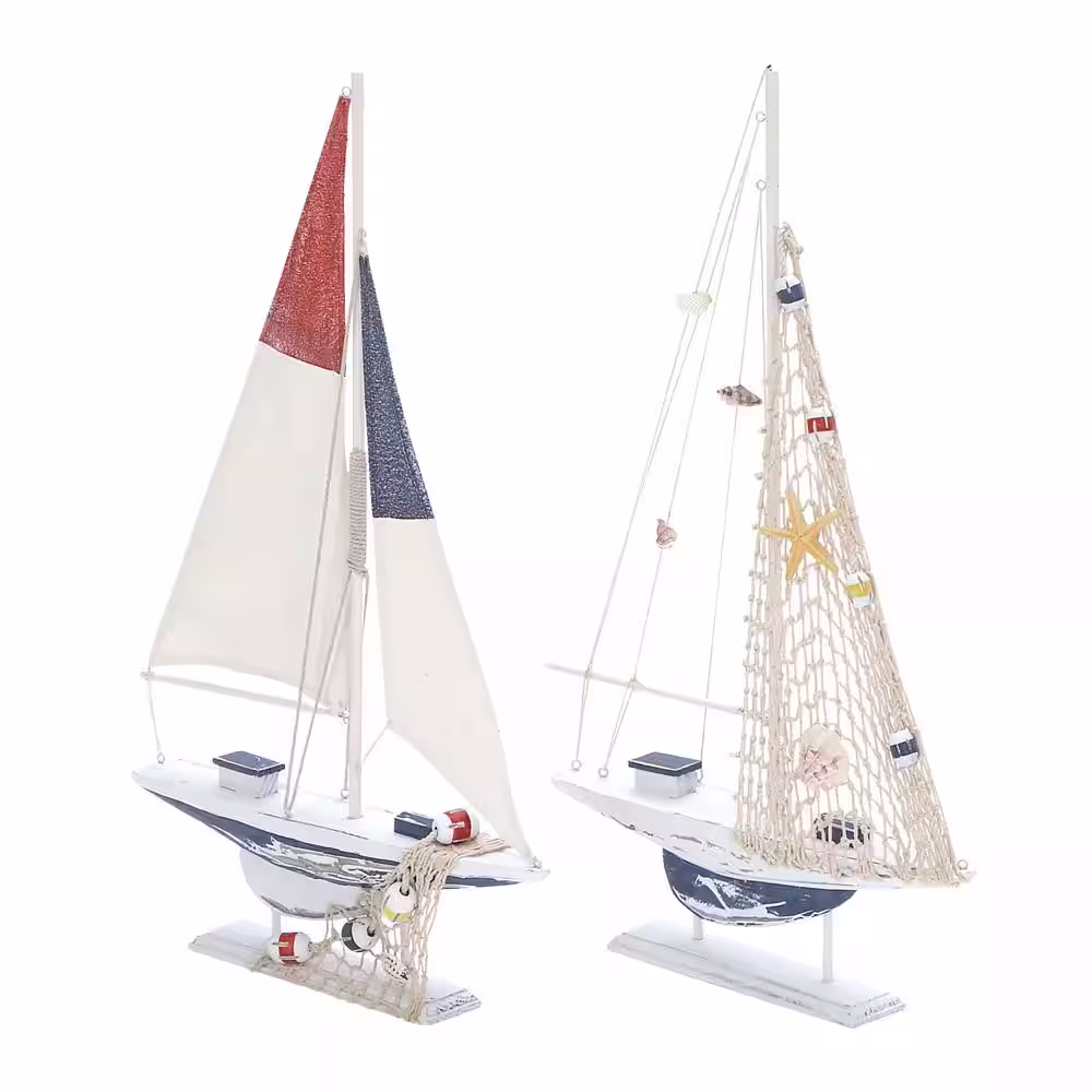 Litton Lane White Wood Sail Boat Sculpture (Set of 2)