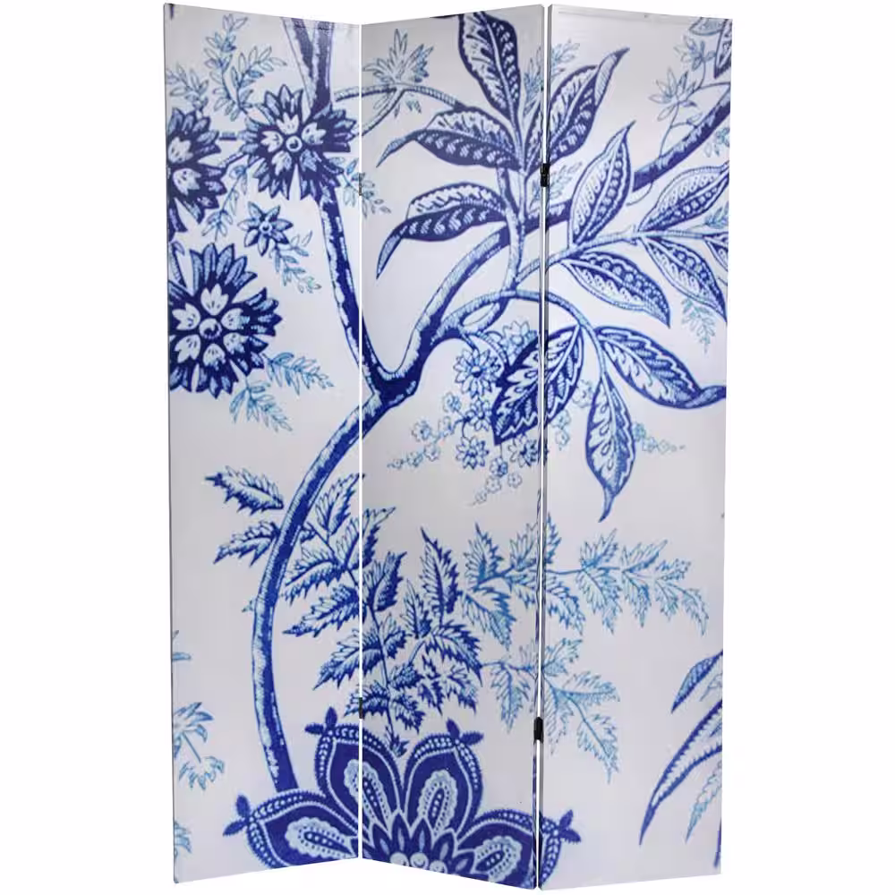 Oriental Furniture 6 ft. Printed 3-Panel Blue Toile Room Divider