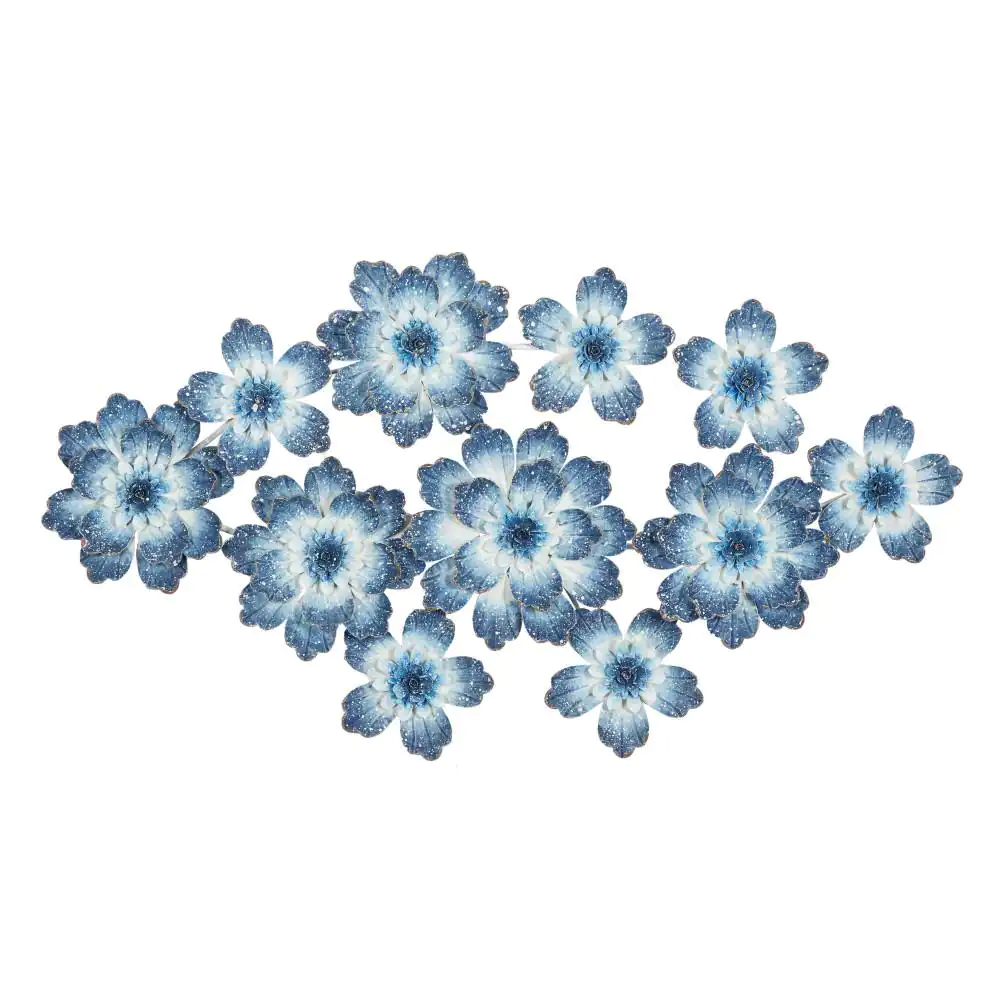 Litton Lane Metal Blue Floral Wall Decor