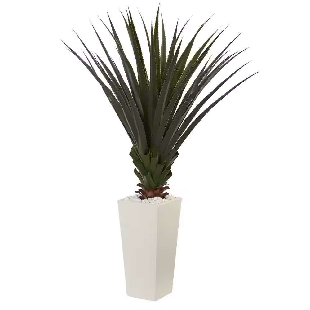 Nearly Natural 5 ft. Spiky Agave Artificial Plant in White Tower Planter