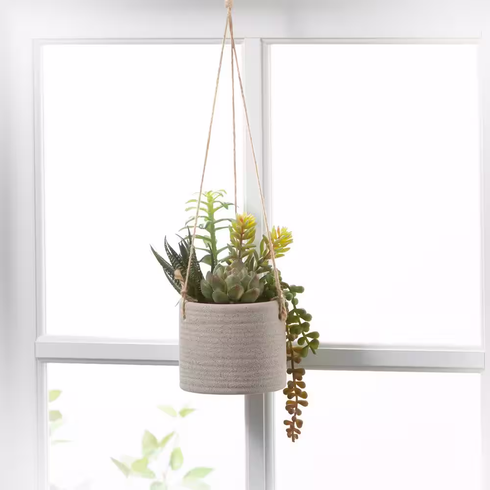 SULLIVANS 7" Artificial Green Succulent in Hanging Gray Pot