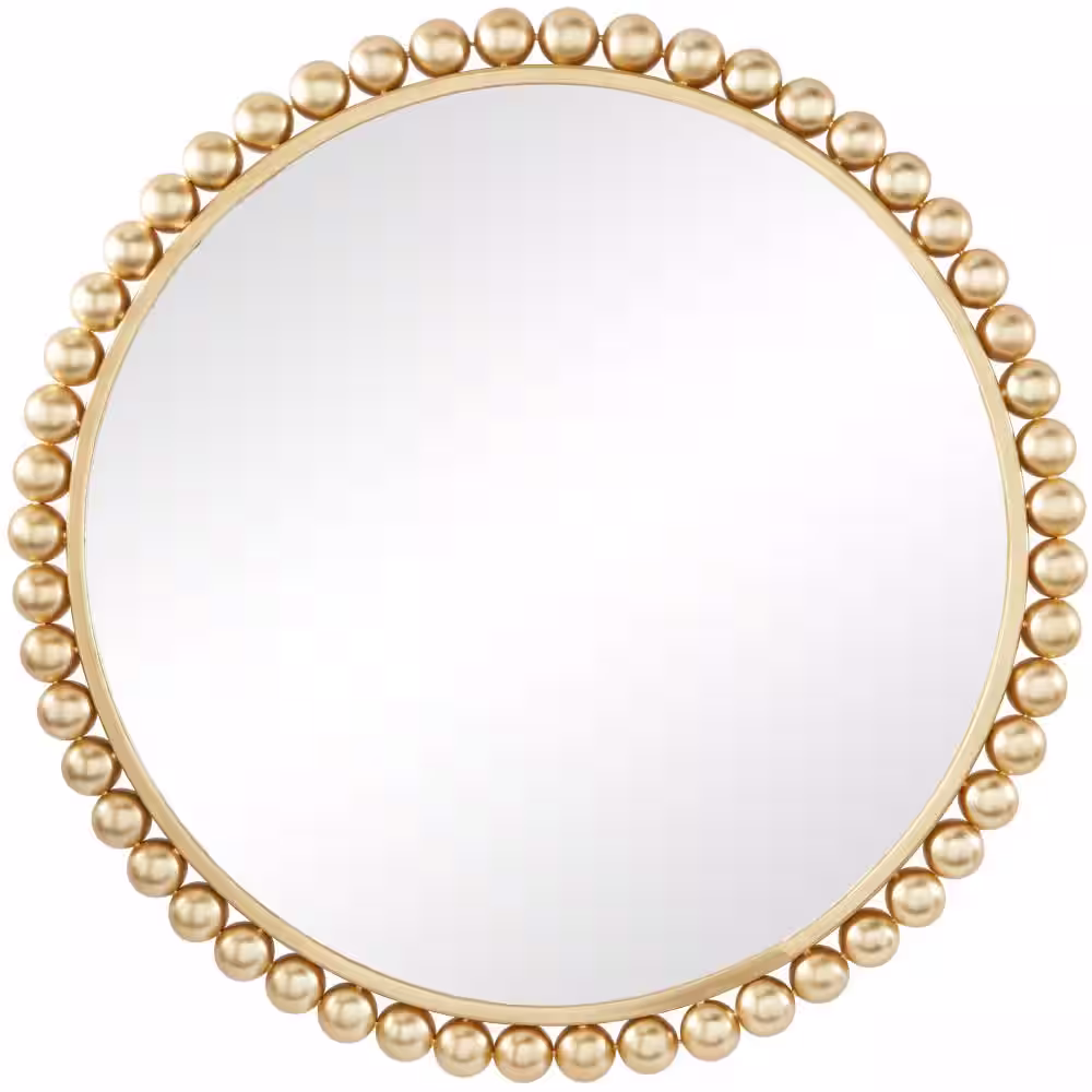CosmoLiving by Cosmopolitan 36 in. x 36 in. Round Framed Gold Wall Mirror with Bead Detailing