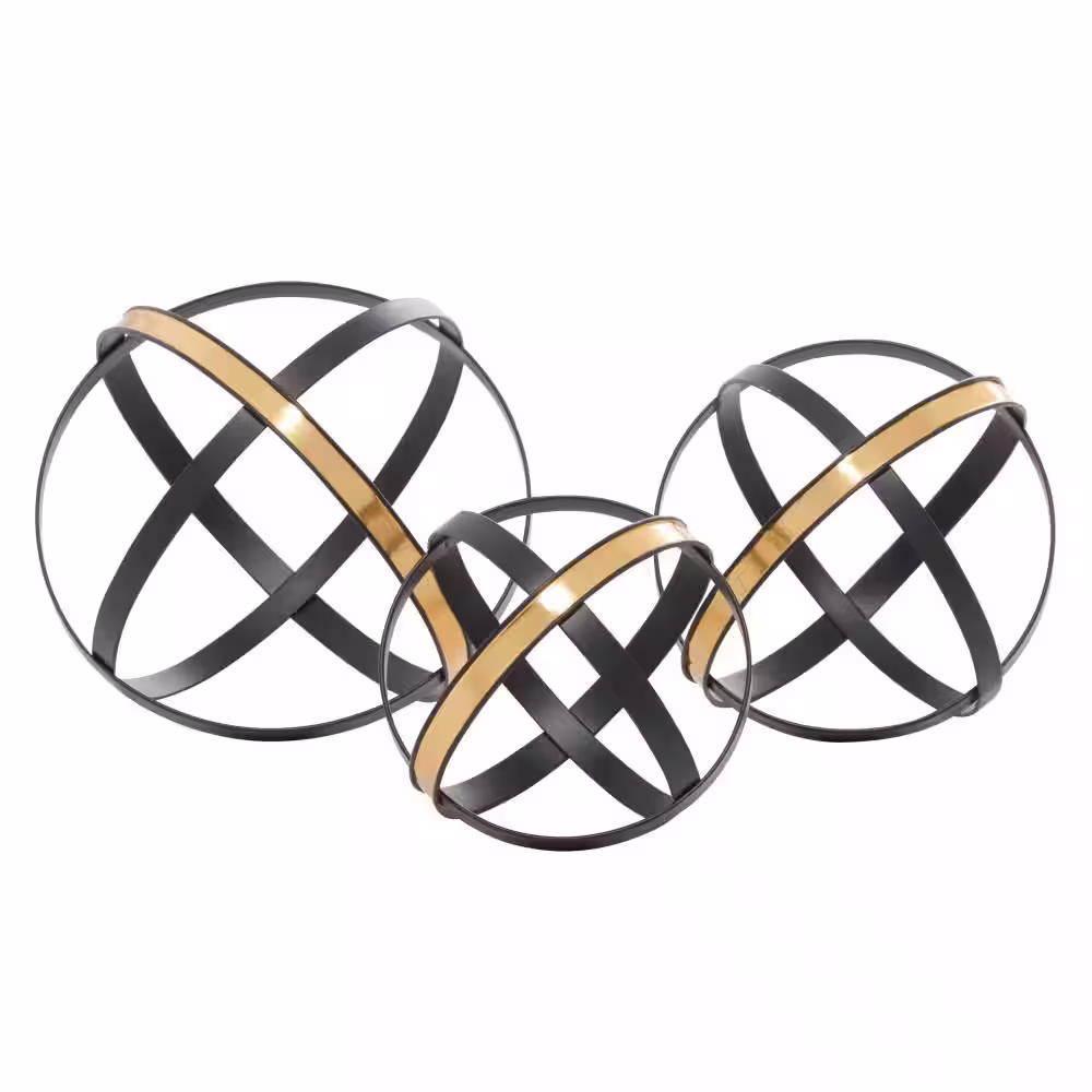 Litton Lane Black Metal Geometric Sculpture with Gold Accents (Set of 3)