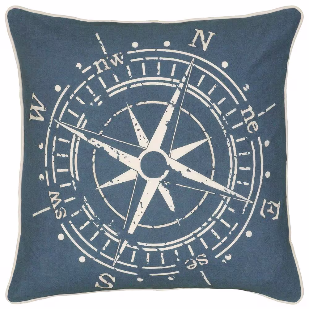 None Navy/Beige Compass Designed Cotton Poly Filled 18 in. X 18 in. Decorative Throw Pillow