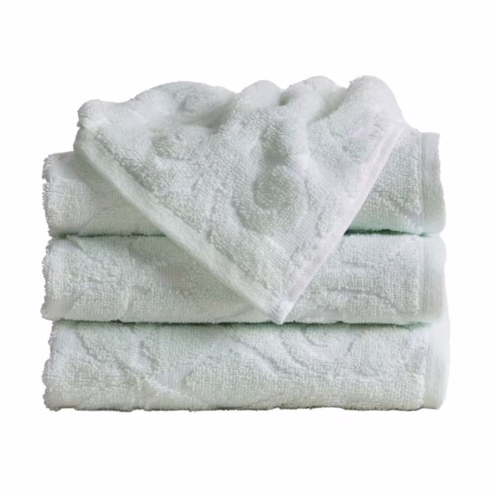 FRESHFOLDS Green Solid 100% Cotton Jacquard Hand Towel (Set of 4)
