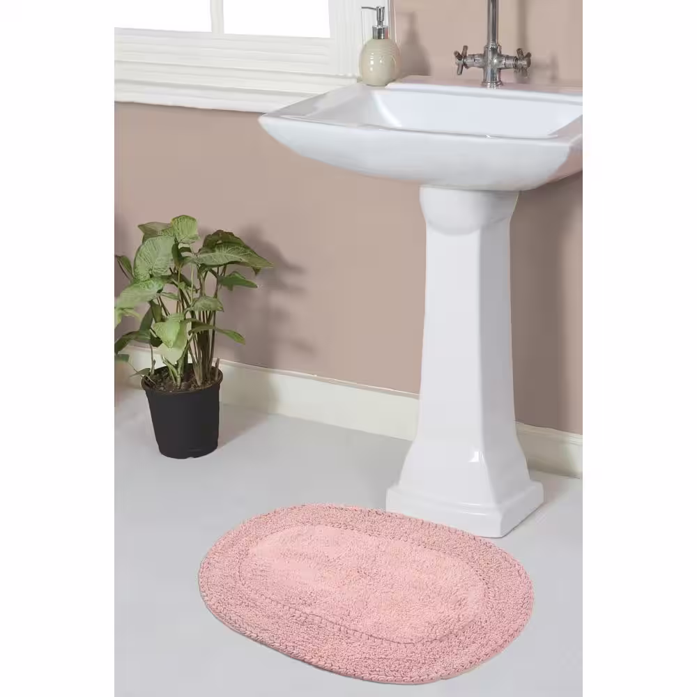 None Double Ruffle Collection 17 in. x 24 in. Pink Cotton Bath Rug