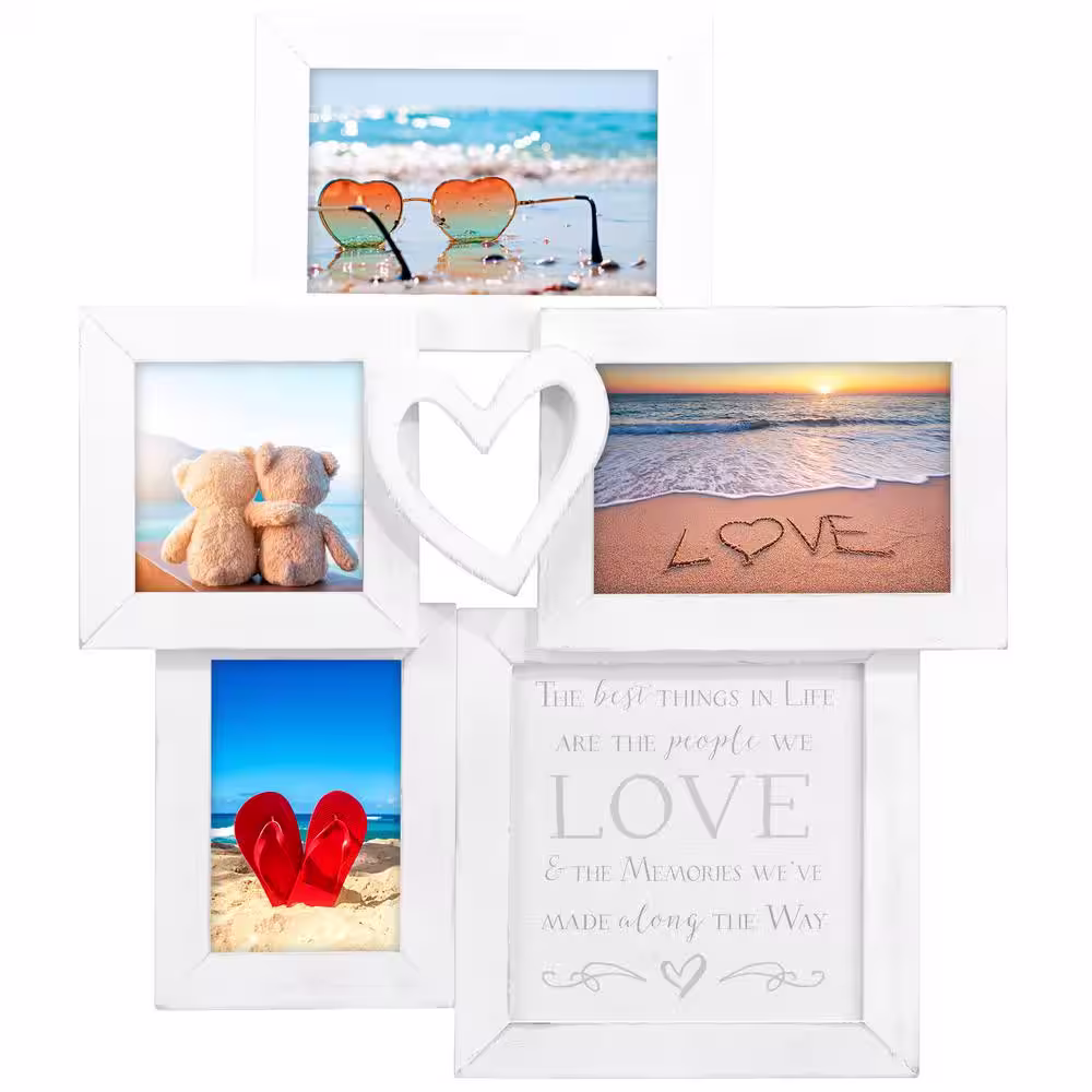 Malden International Designs 4 in. x 4 in./4 in. x 6 in. White 4-Op. Weathered Heart with Sentiment Collage Picture Frame