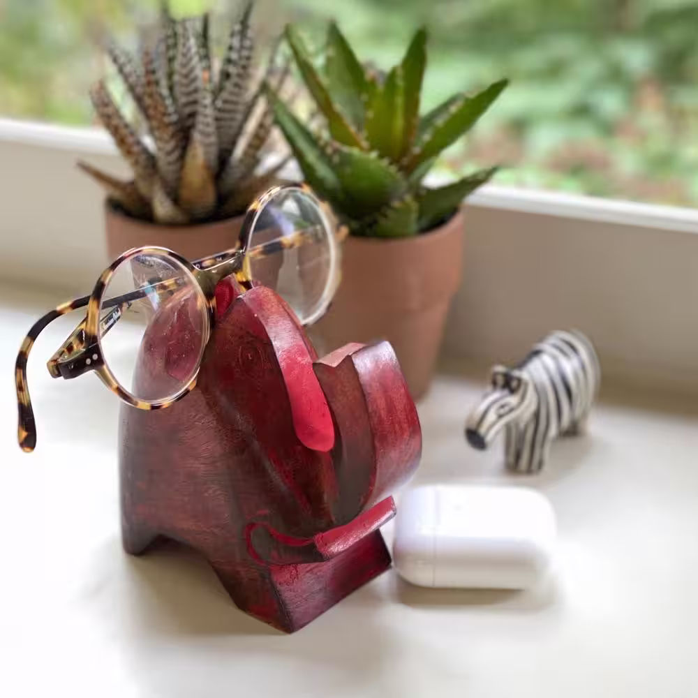 None Red Wash Elephant Eyeglass Stand