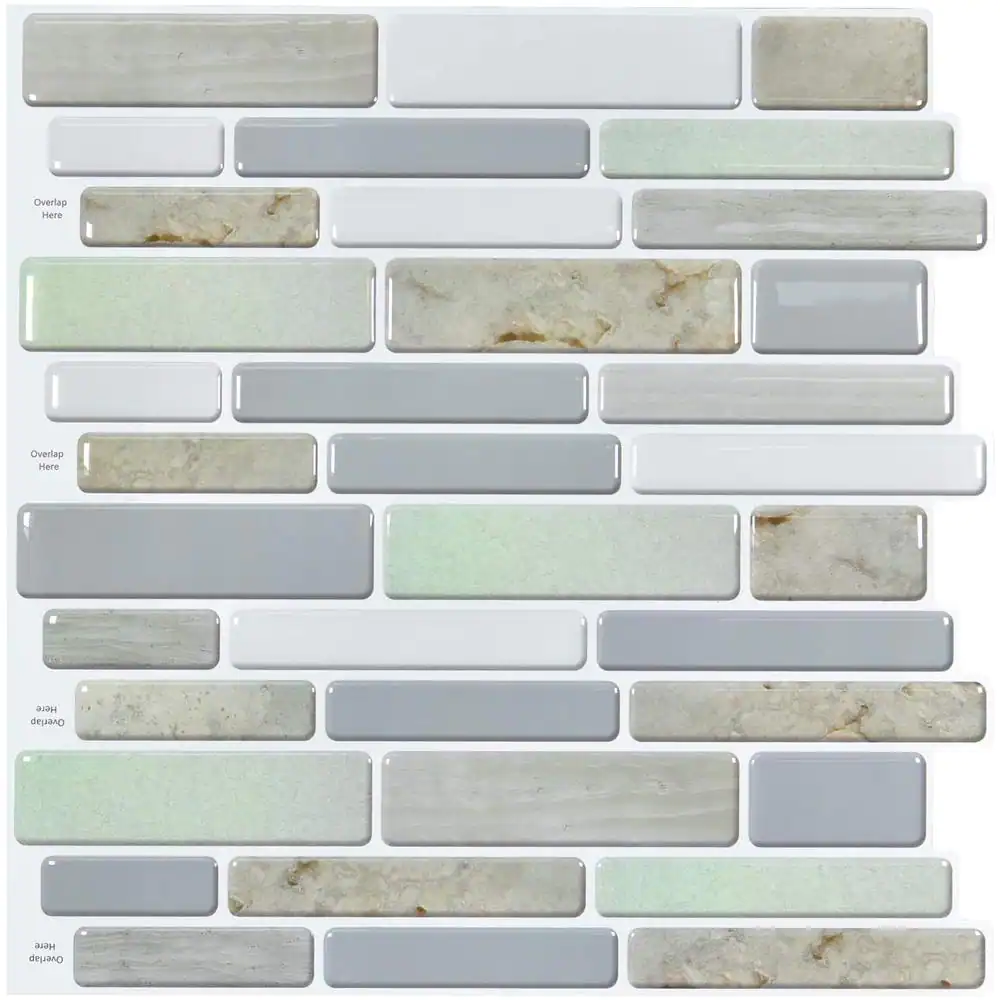 Art3d 12 in. x 12 in. Peel and Stick Vinyl Backsplash Tile in Long Stone (6-Pack)