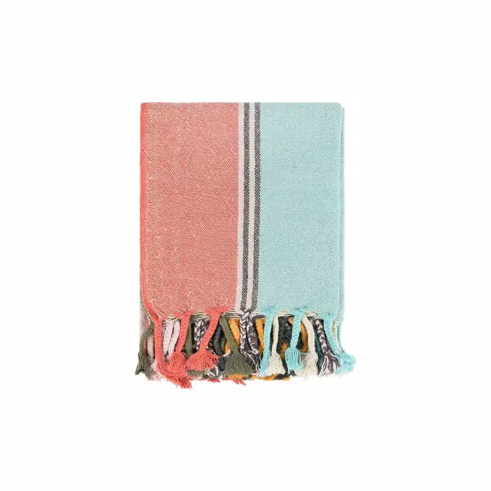 Storied Home 60 in. L x 50 in. W Multicolor Recycled Cotton Blend Striped Throw with Braided Fringe