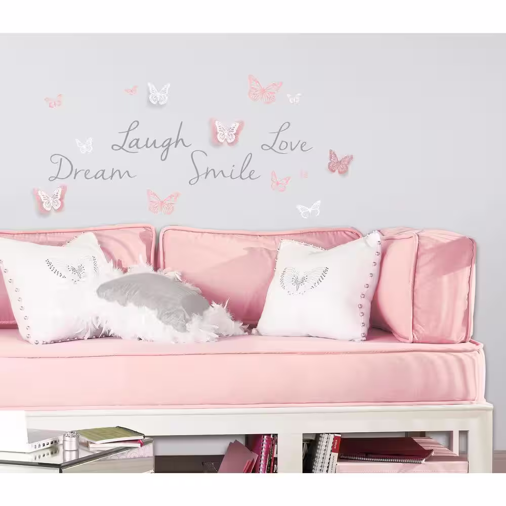 York Wallcoverings 5 in. x 11.5 in. Butterfly Dream with 3D Butterflies 21-Piece Peel and Stick Wall Decal
