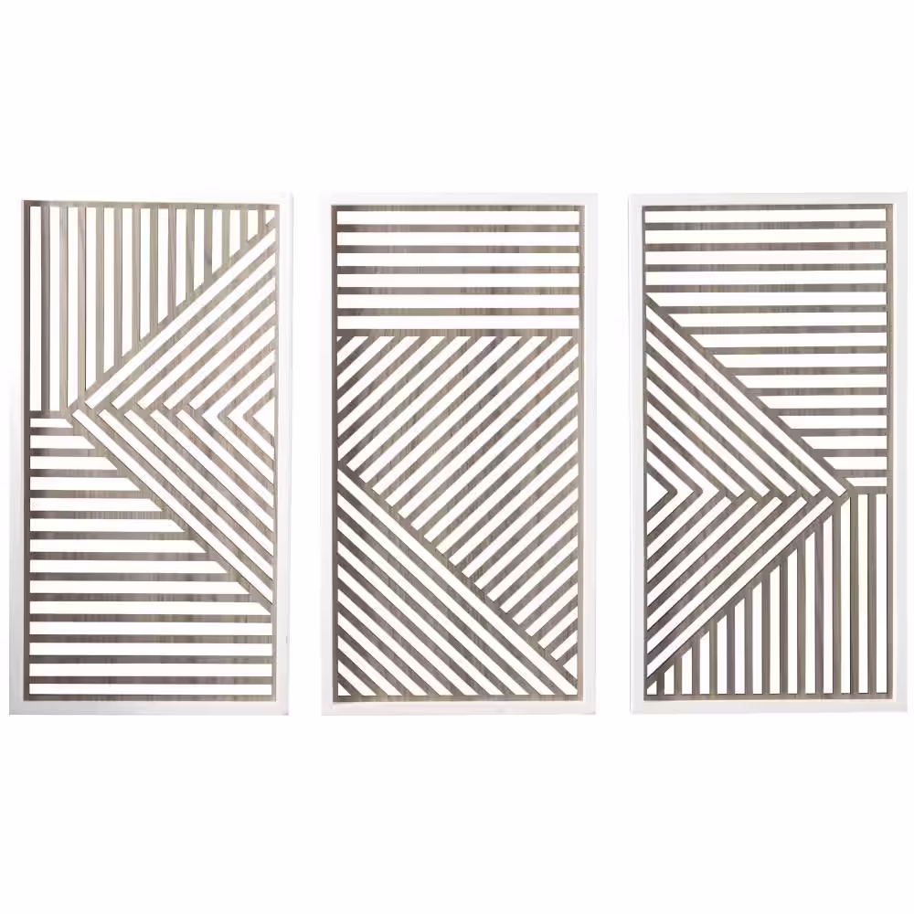 Litton Lane Brown Wood Carved Geometric Wall Art (Set of 3)