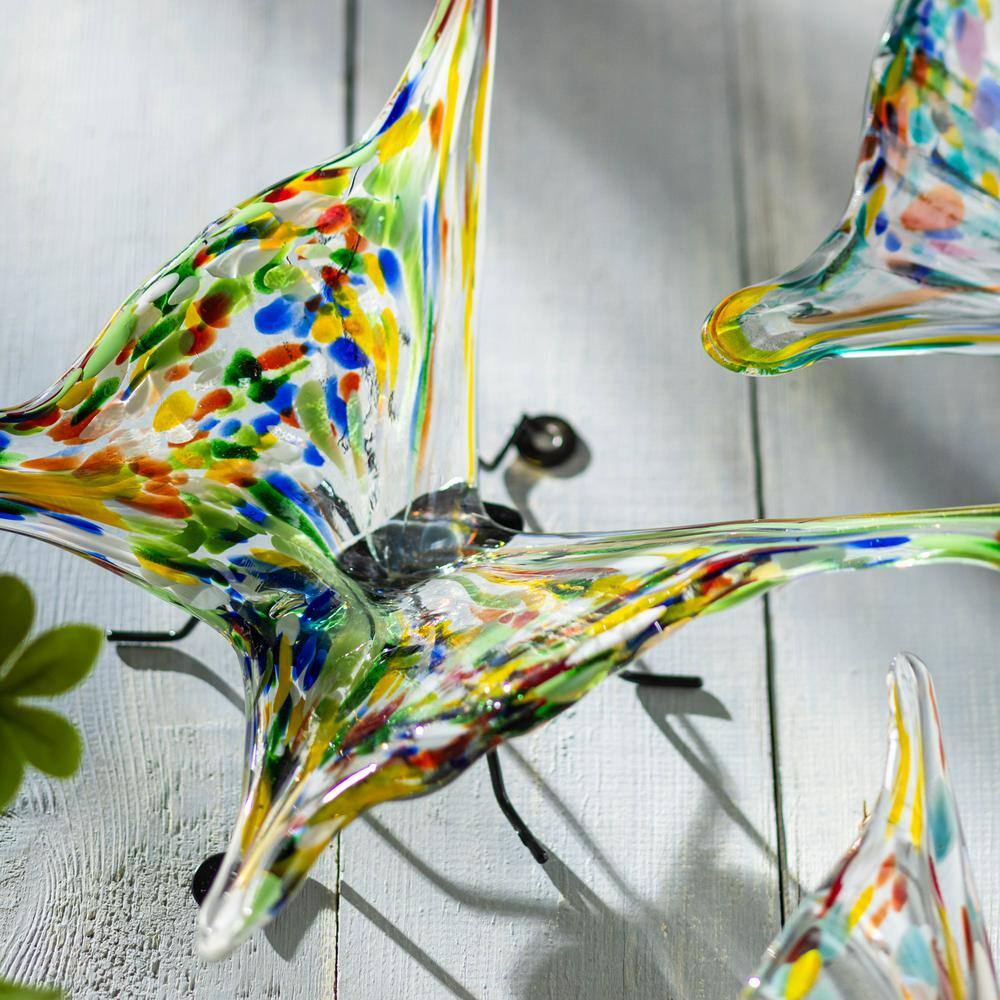Evergreen Glass Butterfly with Iron Feet, Set of 3