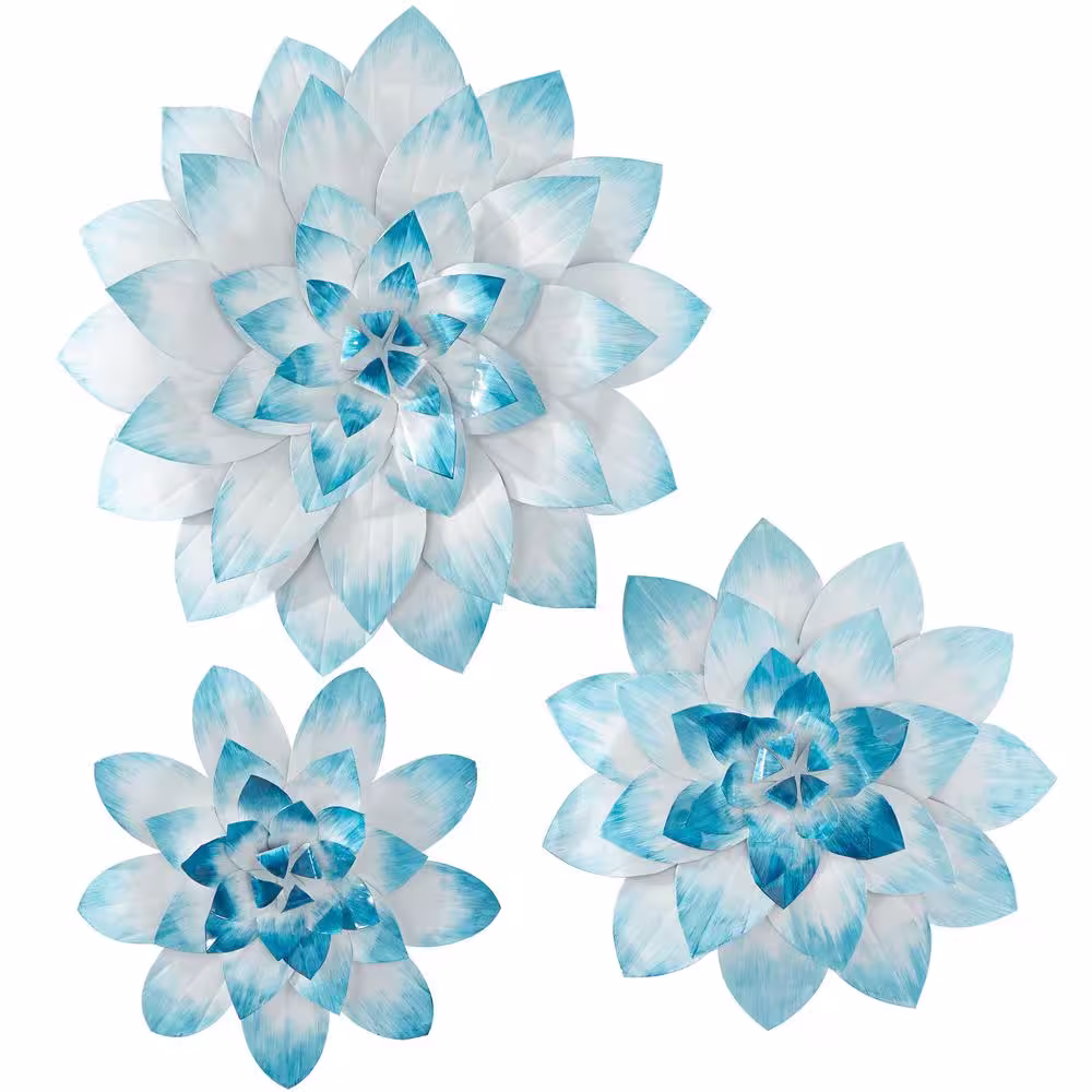 Novogratz 22 in., 17 in., 15 in. Blue Metal Modern Floral Wall Decor (Set of 3)