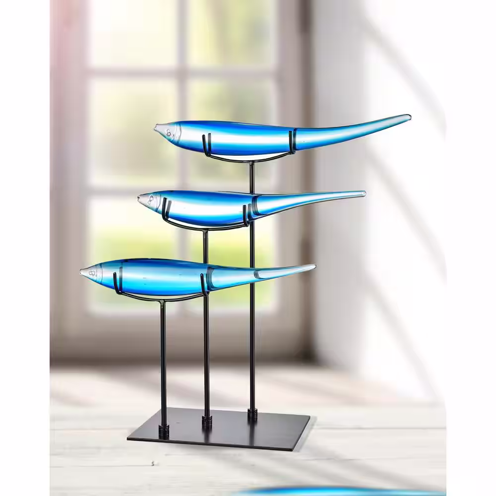Dale Tiffany 19 in. 3 Blue Fish Handcrafted Irregular Art Glass Figurine
