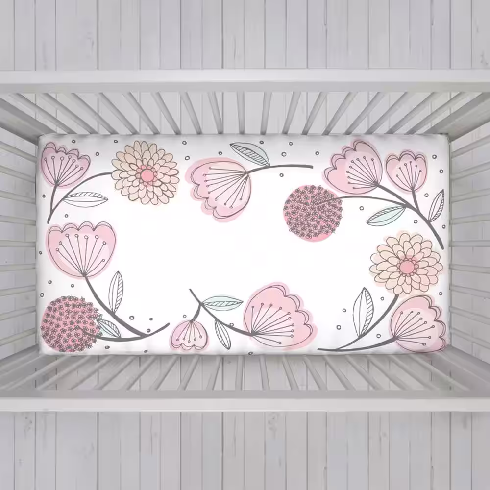 NoJo Pink 100% Cotton Floral Fitted Photo-Op Crib Sheet