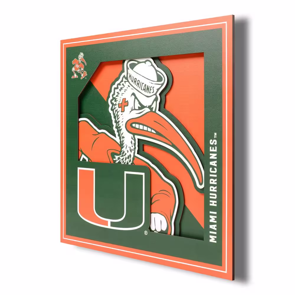 None NCAA Miami Hurricanes 3D Logo Series Wall Art - 12x12
