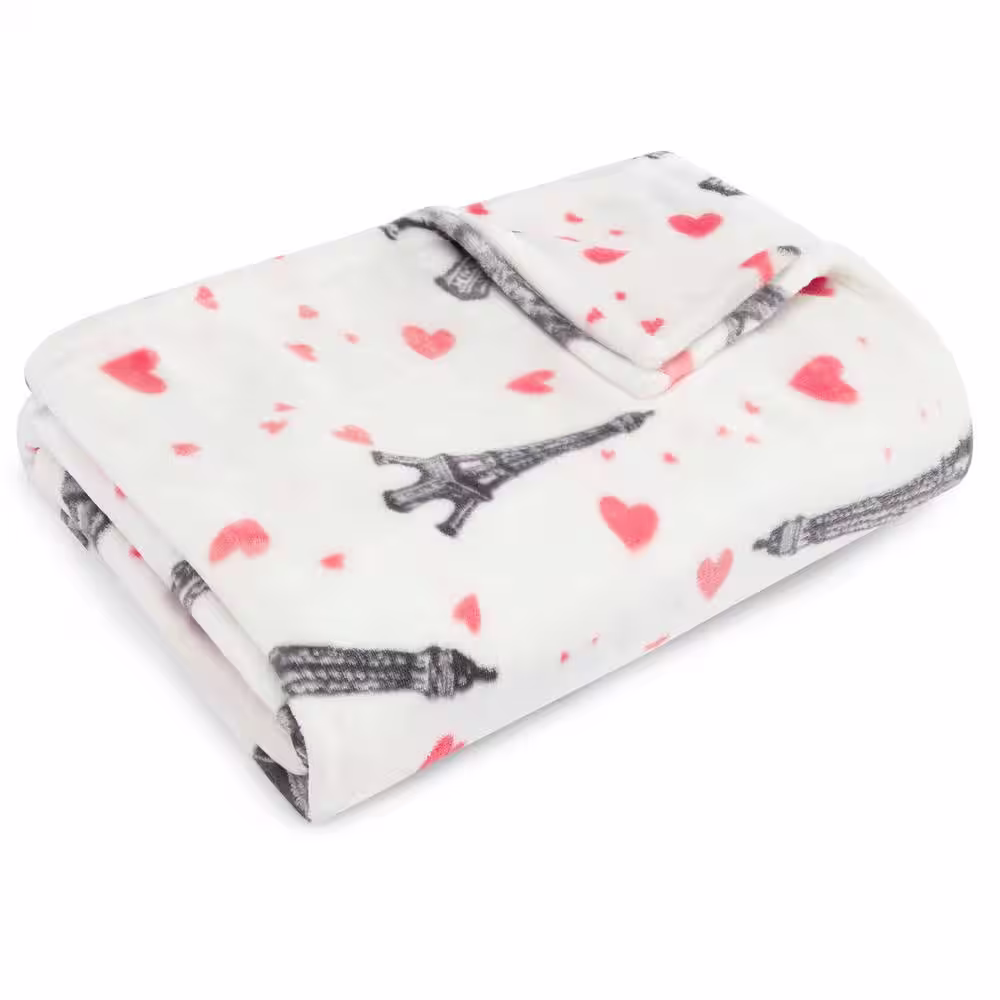 BETSEY JOHNSON Paris Love70 in. x 50 in. 1-Piece White Ultra Soft Plush Sherpa Throw