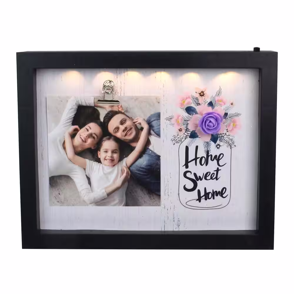Northlight 4 in. x 6 in. Black Matte LED Lighted Home Sweet Home Picture Frame with Clip