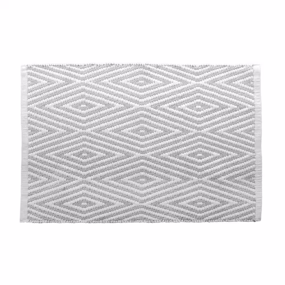 None Oxford Bath Mat 20 in. x 32 in. Cotton Gray/White