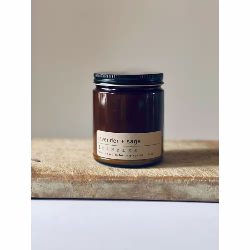 Z CANDLES Lavender plus Sage, Amber Jar Candle 8 oz.