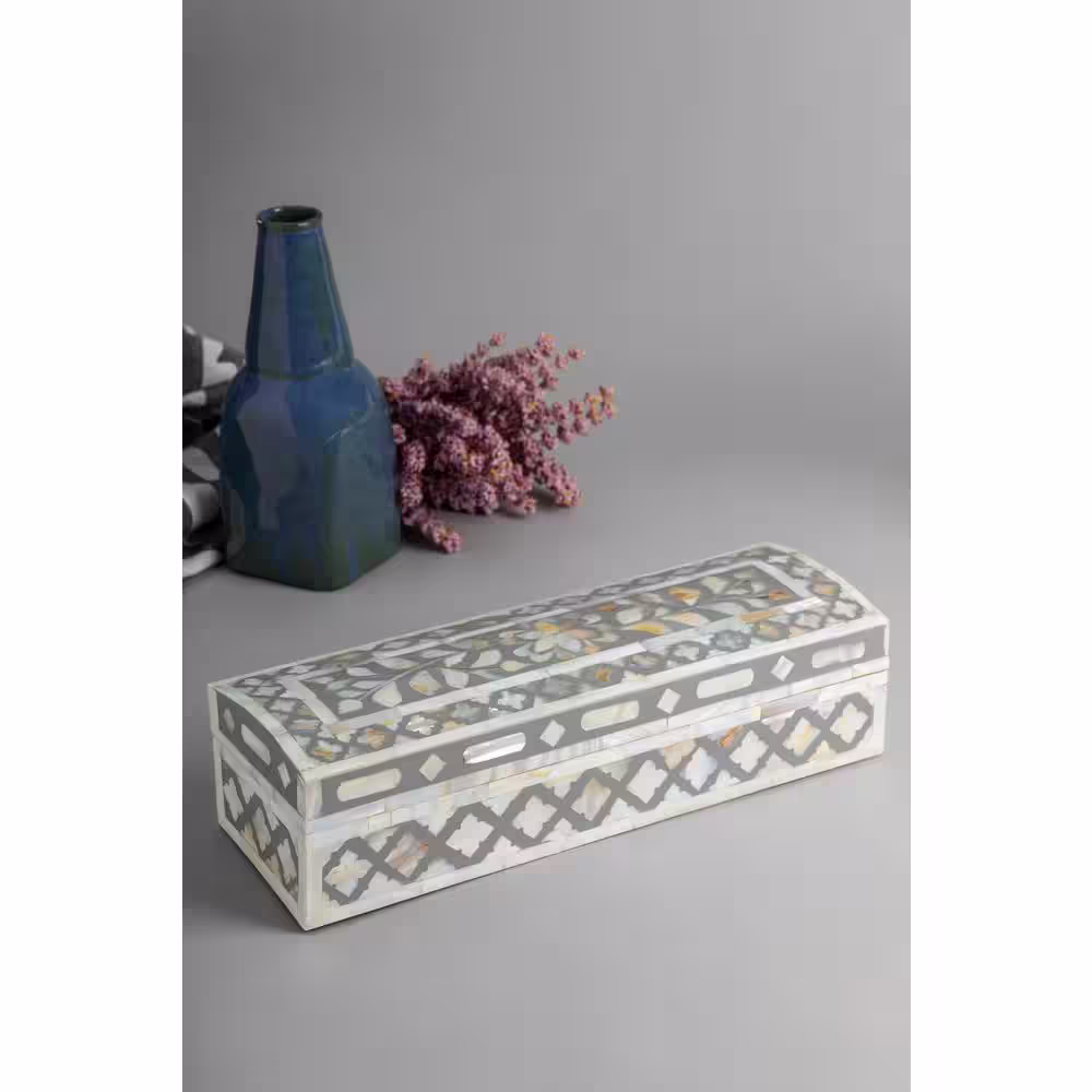 GAURI KOHLI Jodhpur Mother of Pearl Decorative Box - Gray 12 in.