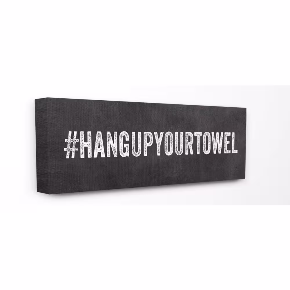 Stupell Industries 10 in. x 24 in. "Hashtag Hang Up Your Towel" by Linda Woods Printed Canvas Wall Art