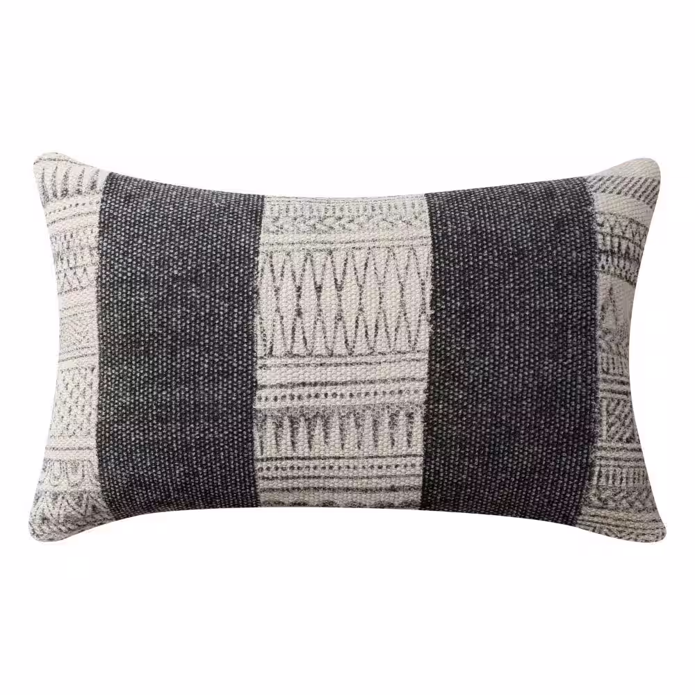 THE URBAN PORT Gray and White Kilim Pattern 12 in. x 20 in. Rectangular Soft Cotton Accent Lumbar Throw Pillow (Set of 2)