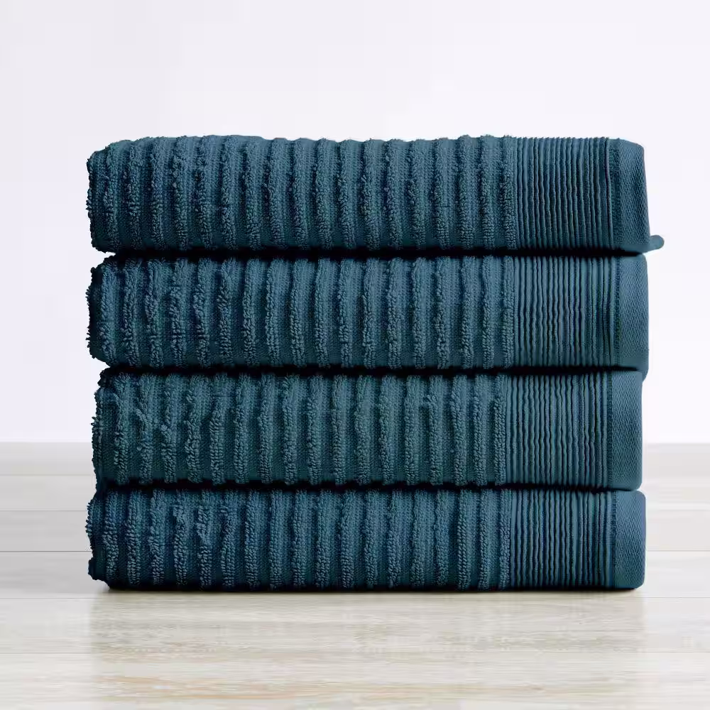 FRESHFOLDS Blue Solid 100% Cotton Ultra- Ribbed Hand Towel (Set of 4)