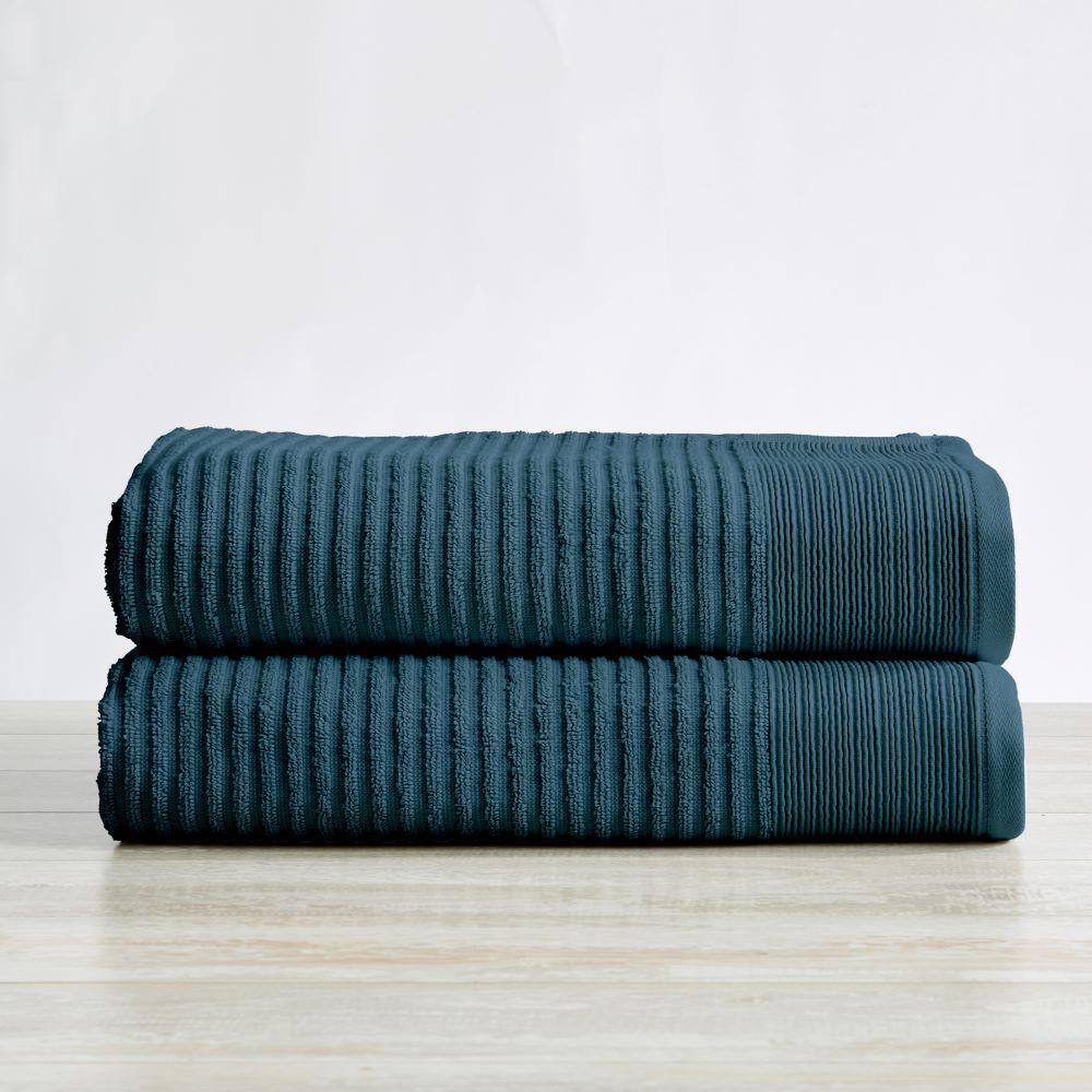 FRESHFOLDS Blue Solid 100% Cotton Ultra- Ribbed Bath Towel (Set of 2)