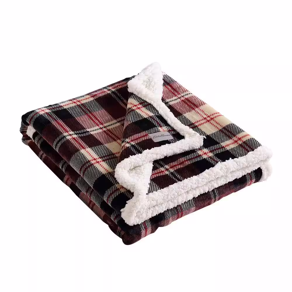 EDDIE BAUER Trailhead Plaid Ultra Soft Sherpa Red Microfiber Throw Blanket